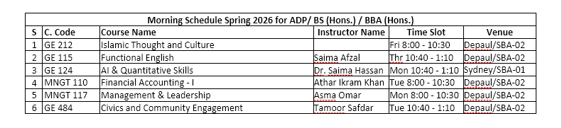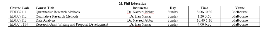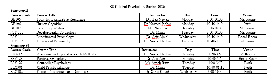 Select your department and program to view the latest timetable.
